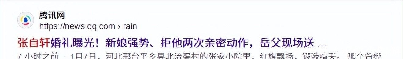 3. 腾讯网:张自轩婚礼曝光!新娘强势、拒他两次亲密动作,岳父现场送车和卡